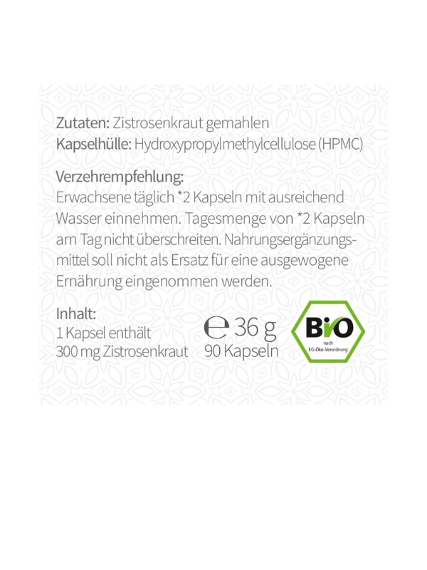 90 Kapseln = 36 g, 1 Kapsel enthält 300 mg Zistrose